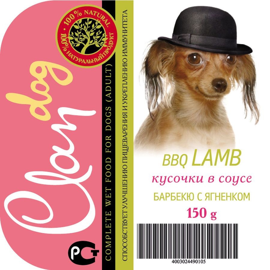 Clan Cl25 влажный корм для собак Деликатес Кусочки в соусе Барбекю с ягненком в консервах - 150 г