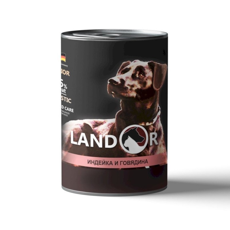 Landor влажный корм для щенков всех пород с индейкой и говядиной в консервах - 400 г