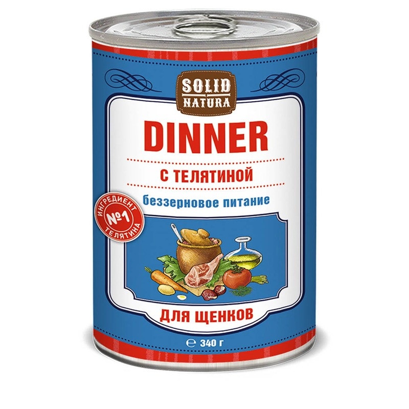 Solid Natura Dinner Телятина влажный корм для щенков в жестяной банке 340 г