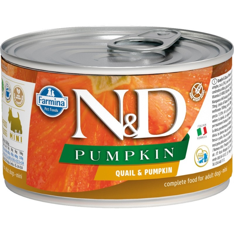 Влажный корм Farmina N&D для взрослых собак мелких пород с тыквой и перепелом - 140 г
