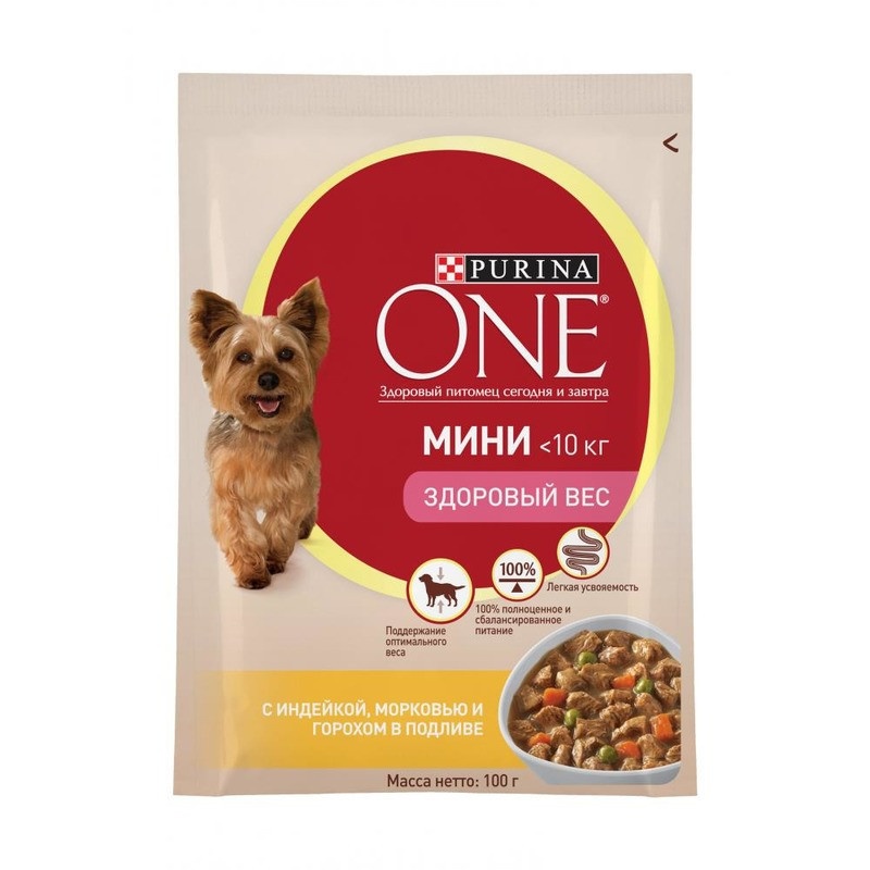Влажный корм Purina ONE Мини Здоровый вес для взрослых собак мелких пород для поддержания оптимального веса с индейкой, морковью и горохом в подливе - 100 г