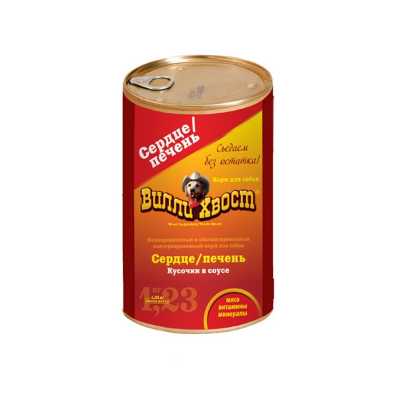 Влажный корм Вилли Хвост для собак с сердцем и печенью - 1,230 кг