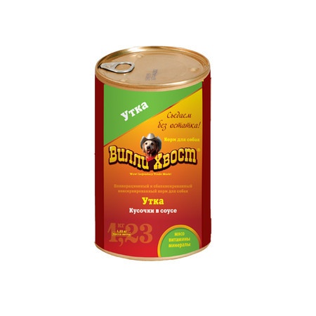 Влажный корм Вилли Хвост для собак с уткой - 1,230 кг