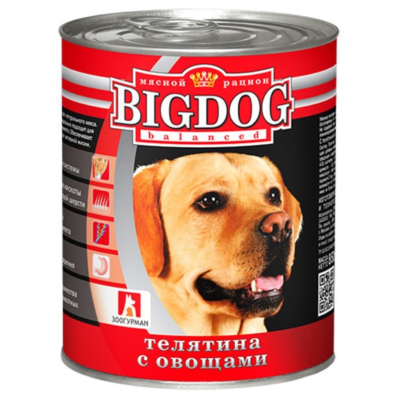 Влажный корм Зоогурман для взрослых собак средних и крупных пород с телятиной и овощами - 850 г