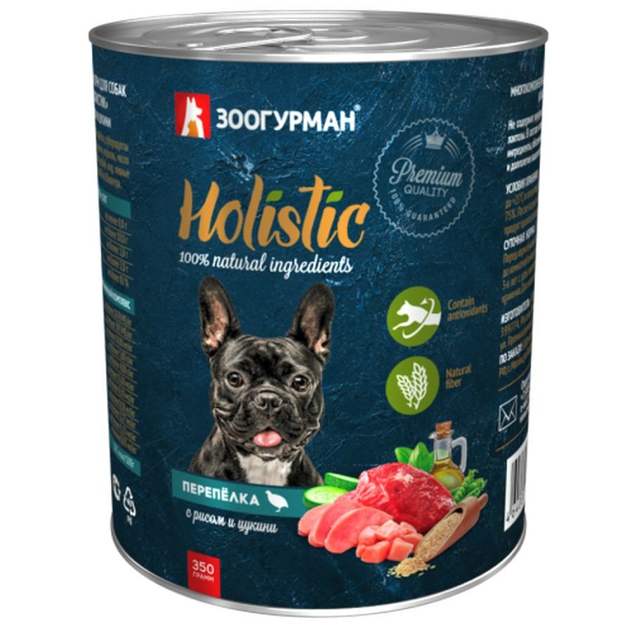 Зоогурман Holistic влажный корм для взрослых собак всех пород с перепелкой, рисом и цукини - 350 г