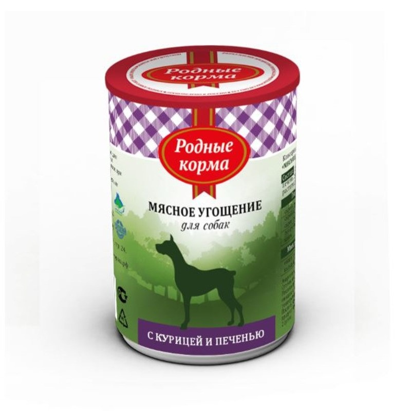 Родные корма Мясное угощение с Курицей и печенью консервы для собак 340 г