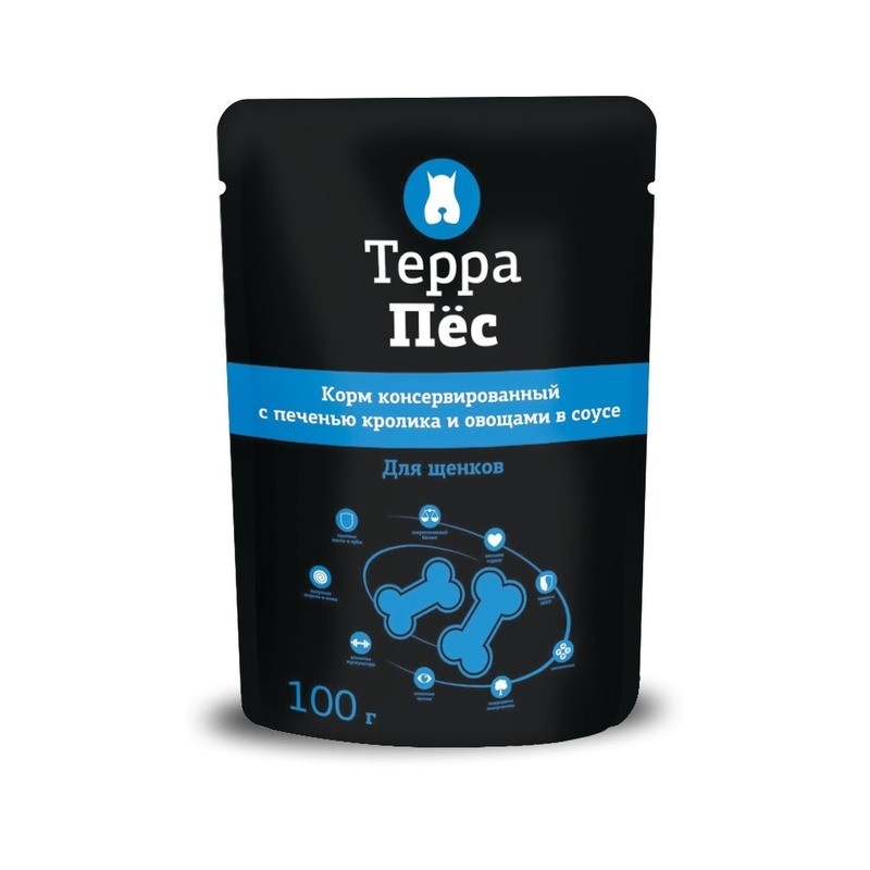 Терра Пёс влажный корм для щенков всех пород с печенью кролика и овощами в соусе - 100 г
