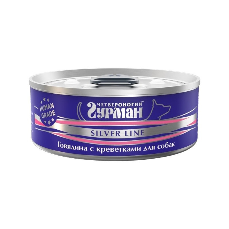 Четвероногий Гурман Silver line говядина с креветками для собак 100 г