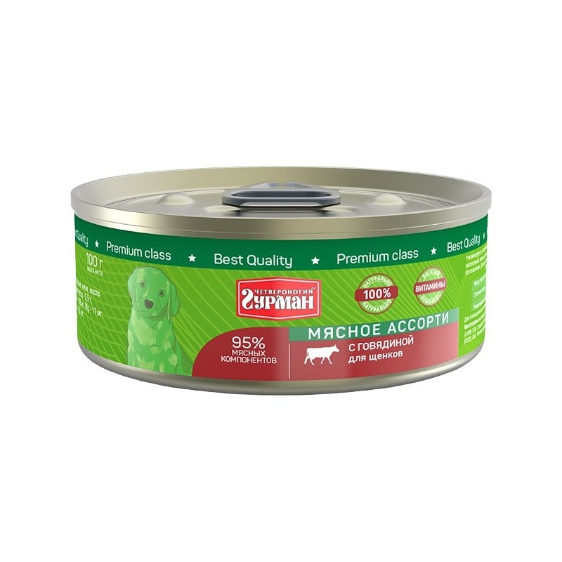 Четвероногий Гурман Мясное ассорти с говядиной для щенков 100 г