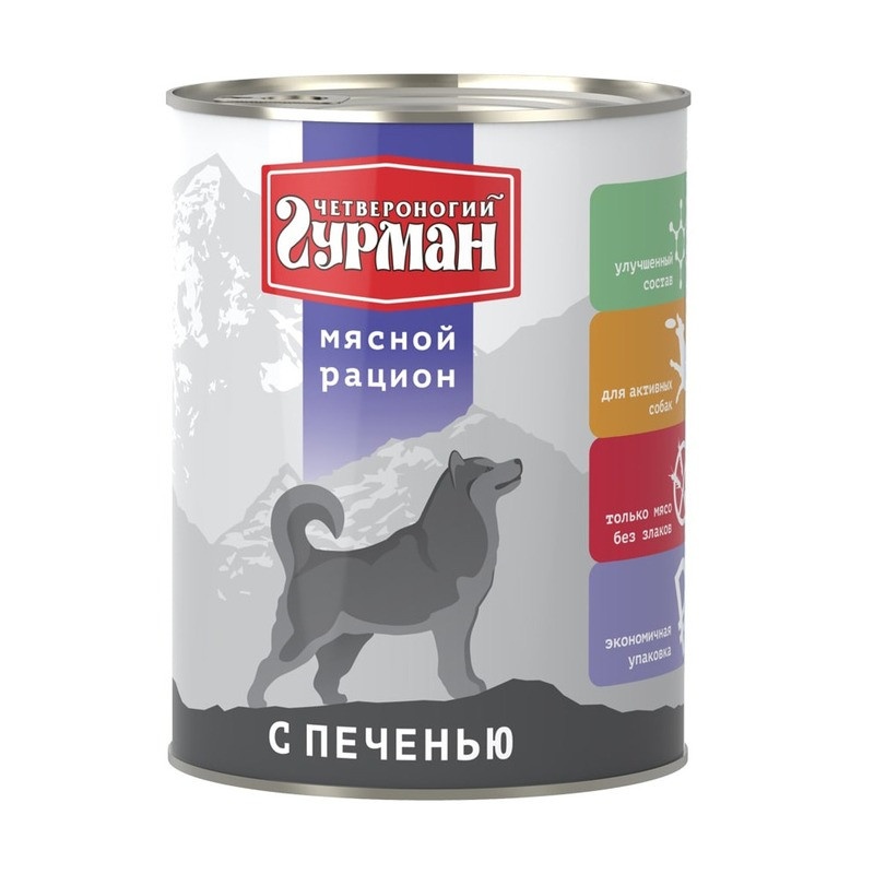 Четвероногий Гурман Мясной рацион с печенью для собак - корм с натуральным мясом без консервантов и сои.