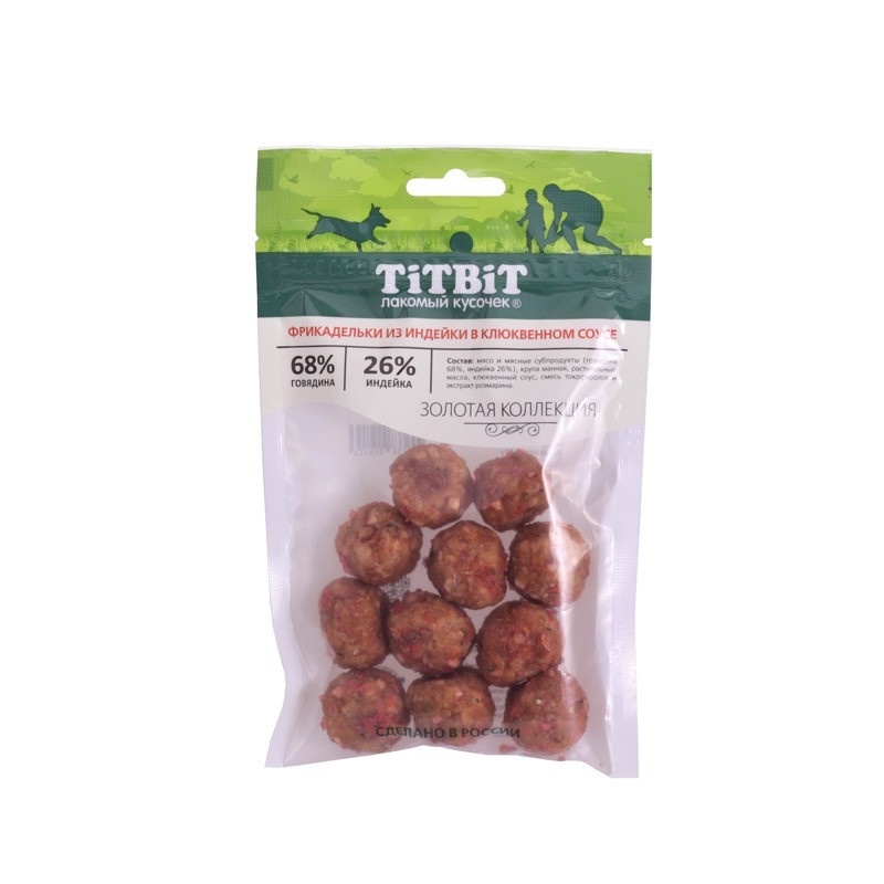 TiTBiT Фрикадельки из индейки в клюквенном соусе для собак, золотая коллекция - 70 г