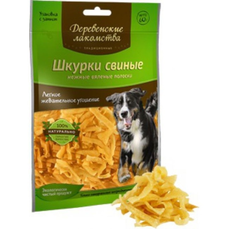 Деревенские лакомства "Традиционные" Шкурки свиные нежные вяленые полоски - 60 г