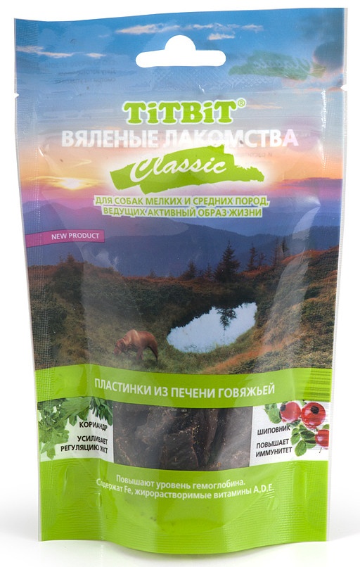 Titbit вяленые лакомства пластинки из печени говяжьей Classic 60 г