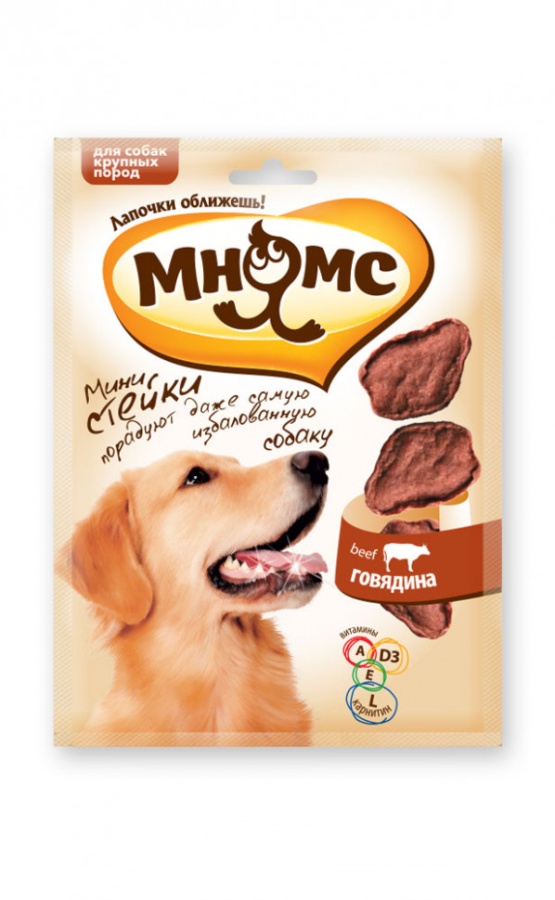 Мнямс лакомство Стейки с говядиной для собак крупных пород - 75 г