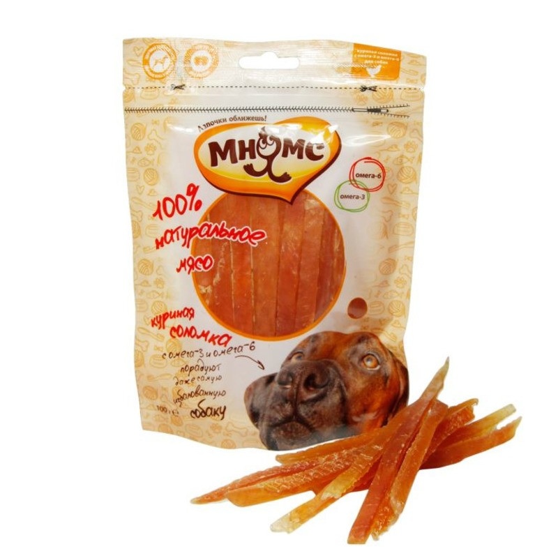 Мнямс лакомство Куриная соломка с омега-3 и омега-6 для собак - 100 г
