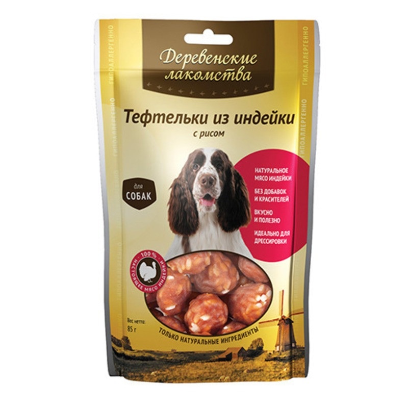 ДЕРЕВЕНСКИЕ ЛАКОМСТВА 100 % Мяса тефтельки из индейки с рисом для собак 85 гр