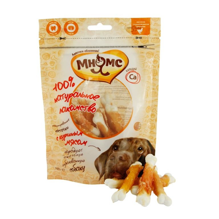 Мнямс лакомство Кальцинированные косточки с куриным мясом для собак - 100 г