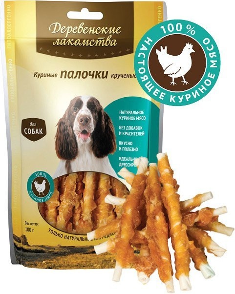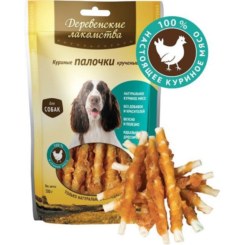 ДЕРЕВЕНСКИЕ ЛАКОМСТВА 100 % Мяса Куриные палочки крученые для собак 100 гр