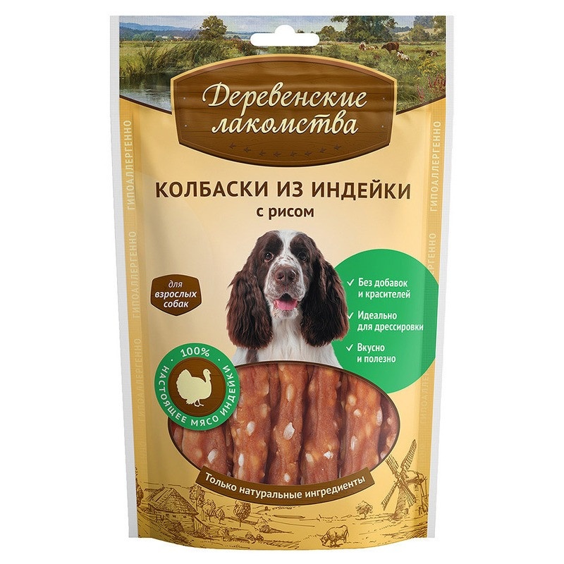 ДЕРЕВЕНСКИЕ ЛАКОМСТВА 100 % Мяса колбаски из индейки с рисом для собак 85 гр