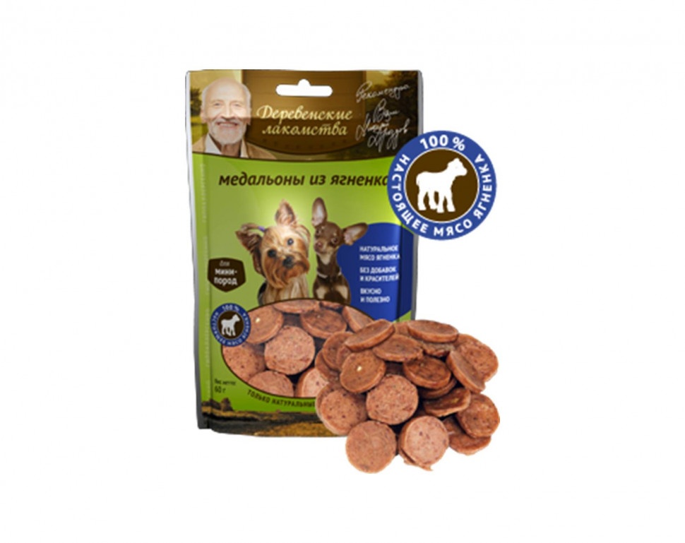 ДЕРЕВЕНСКИЕ ЛАКОМСТВА для мини-пород Медальоны из ягненка 55 гр