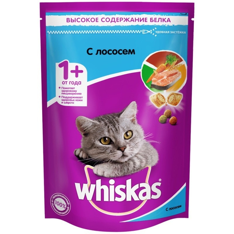 Whiskas сухой корм в виде подушечек с паштетом обед с лососем 350 г