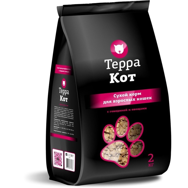 Терра Кот сухой корм для взрослых кошек всех пород с говядиной и овощами - 2 кг
