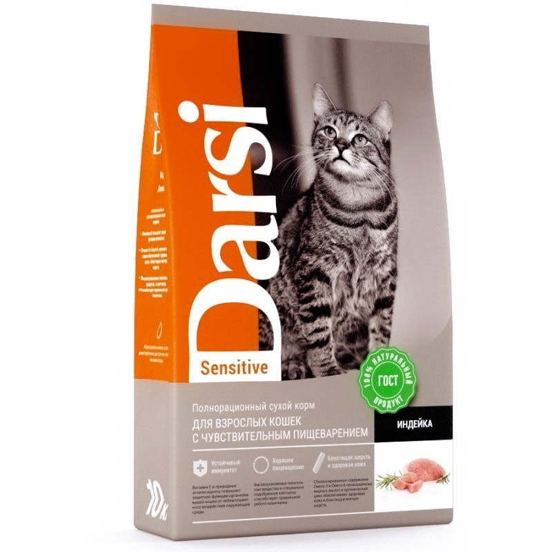 Darsi Sensitive сухой корм для кошек с чувствительным пищеварением с индейкой - 10 кг