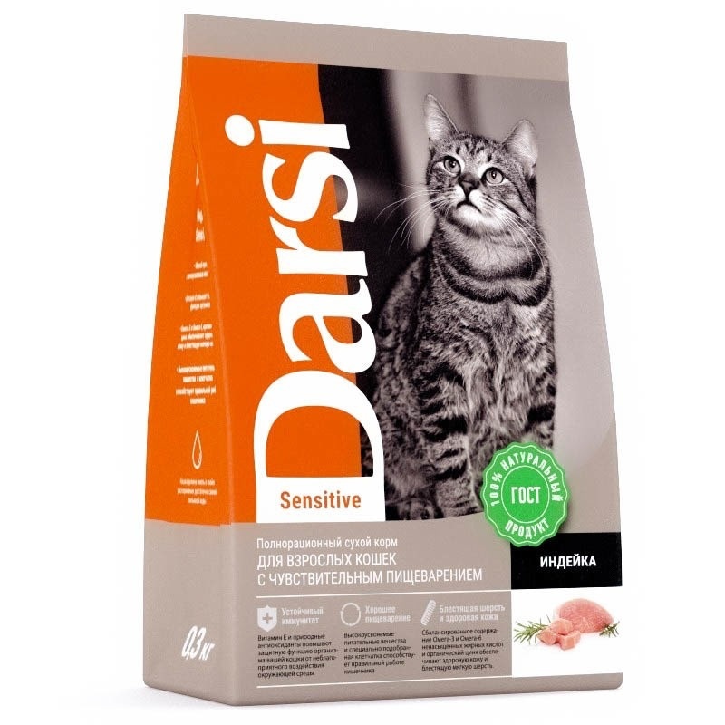 Darsi Sensitive сухой корм для кошек с чувствительным пищеварением с индейкой 300 г