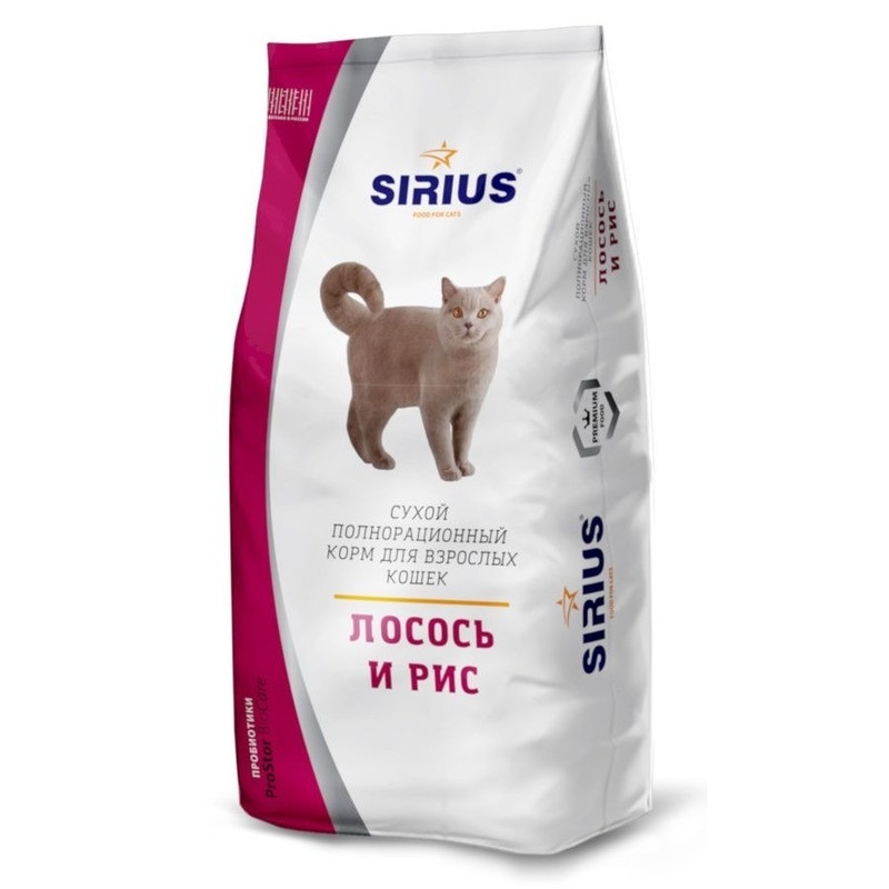 Sirius Сухой корм для взрослых кошек, лосось и рис - 10 кг