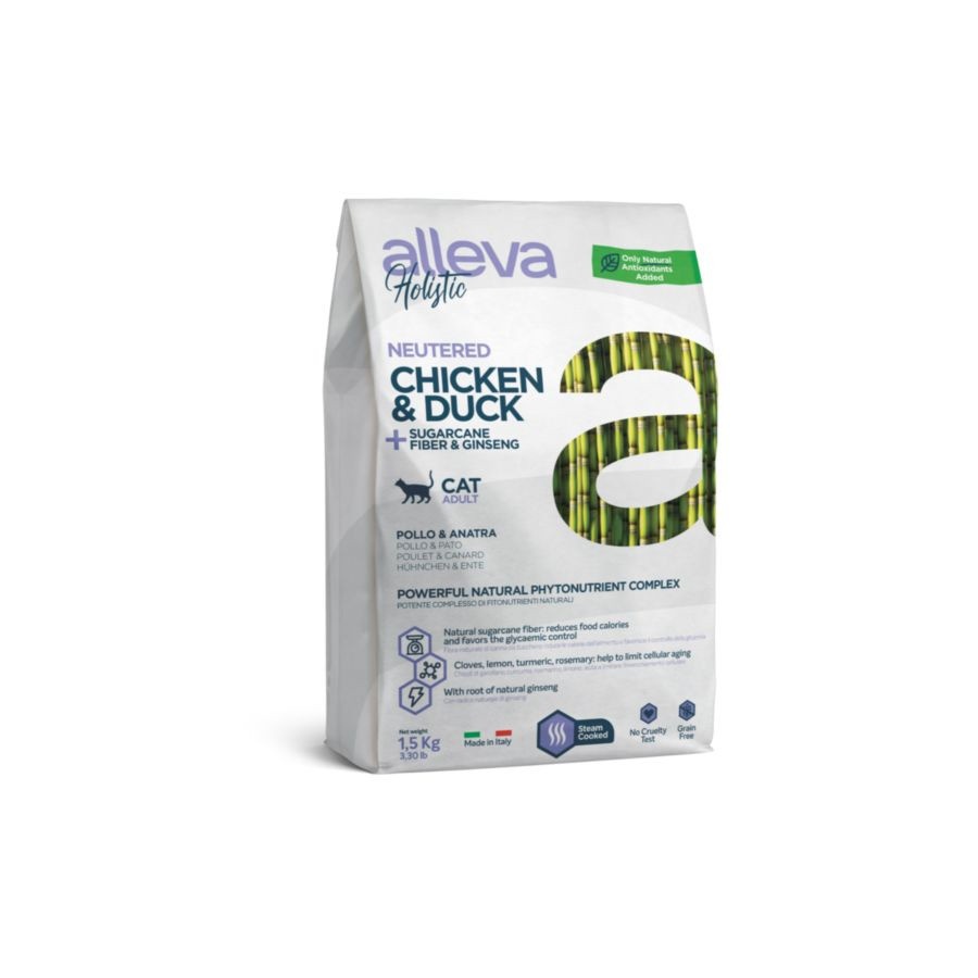 Alleva Holistic Cat Neutered сухой корм для кастрированных котов и стерилизованных кошек с курицей и уткой, волокнами сахарного тростника и женьшенем - 5 кг