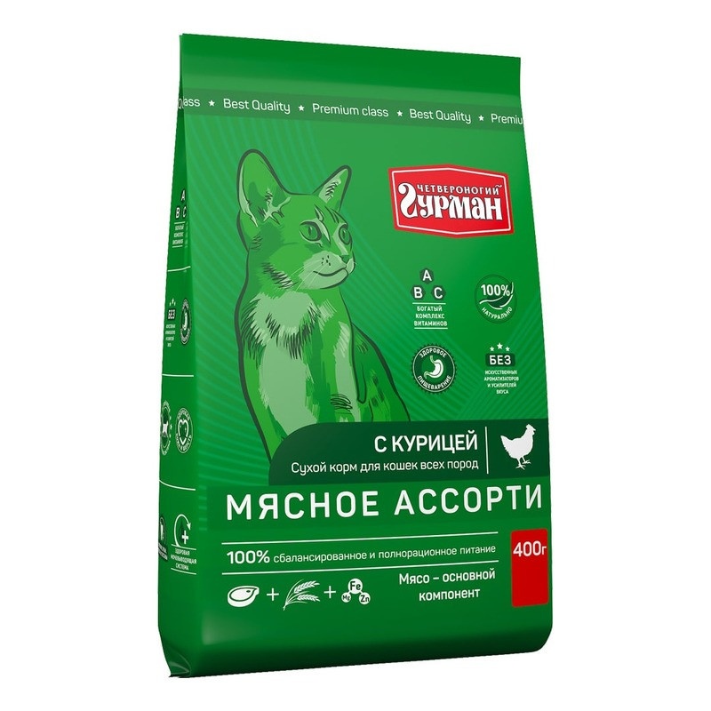 Сухой корм Четвероногий гурман Мясное ассорти для кошек с курицей 400 г