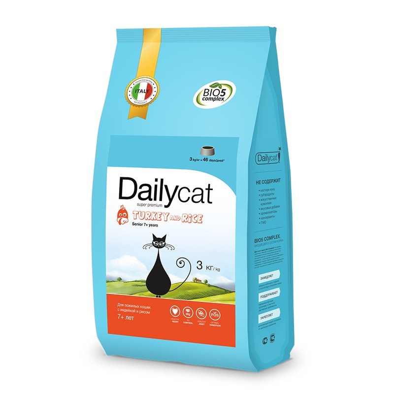 Сухой корм Dailycat Senior Turkey and Rice для пожилых кошек с индейкой и рисом 3 кг