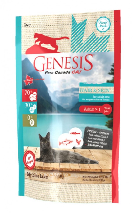 Genesis Pure Canada My Blue Lake Hair Skin для взрослых кошек, для улучшения кожи и шерсти с лососем, форелью и курицей - 340 гр