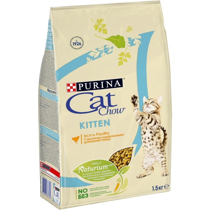 Purina Cat Chow для котят, с домашней птицей - 1,5 кг