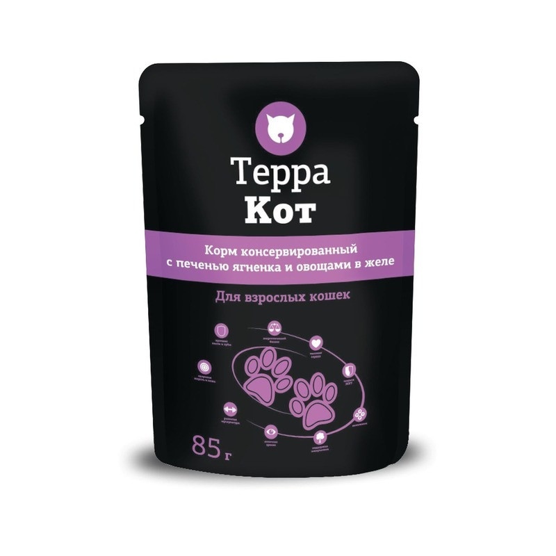 Терра Кот влажный корм для взрослых кошек всех пород с печенью ягненка и овощами в желе - 85 г