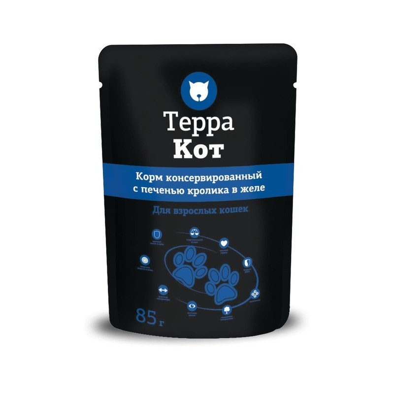 Терра Кот влажный корм для взрослых кошек всех пород с печенью кролика в желе - 85 г