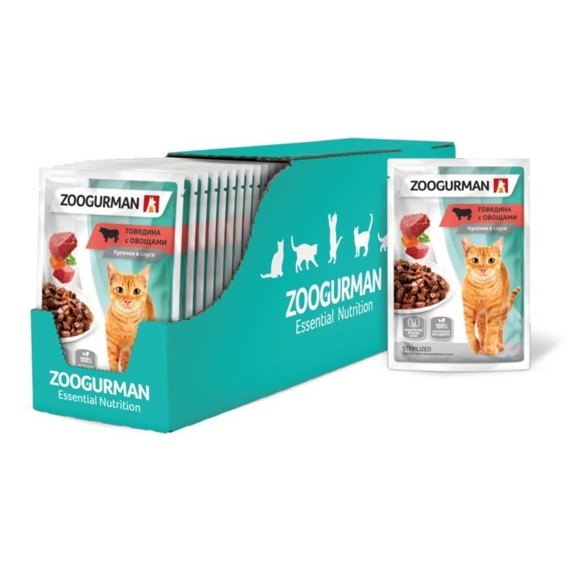 Зоогурман влажный корм для взрослых кошек всех пород с говядиной и овощами в паучах - 85 г