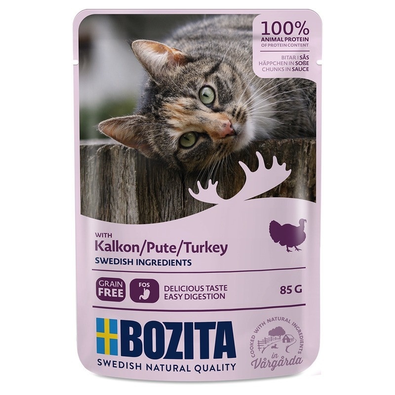 Bozita Pouch Turkey влажный корм для взрослых кошек с кусочками в соусе с индейкой - 85 г
