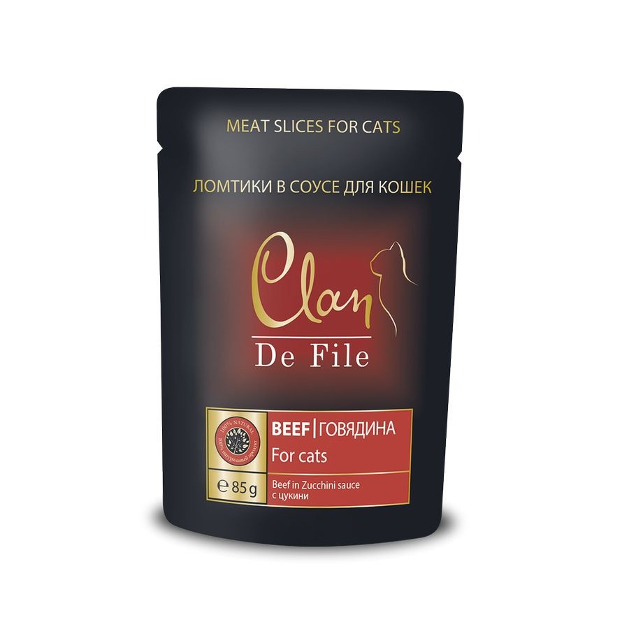 Clan De File влажный корм для кошек с говядиной и цукини в соусе - 85 г