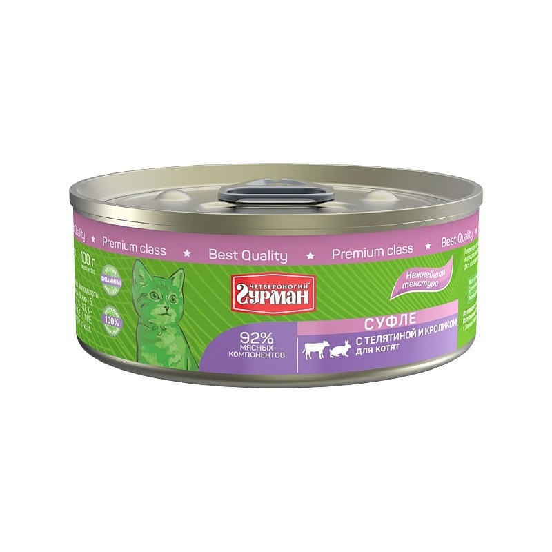 Влажный корм Четвероногий Гурман суфле для котят с телятиной и кроликом - 100 г