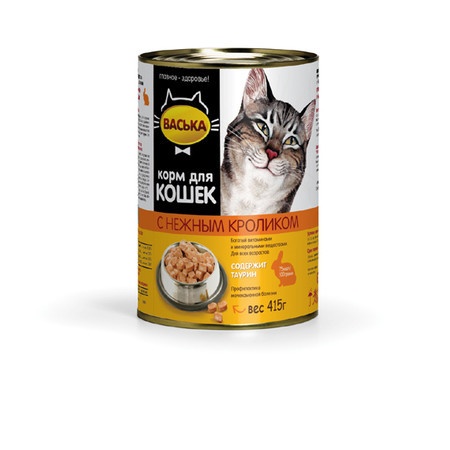 Влажный корм Васька для кошек с нежным кроликом в соусе - 415 г
