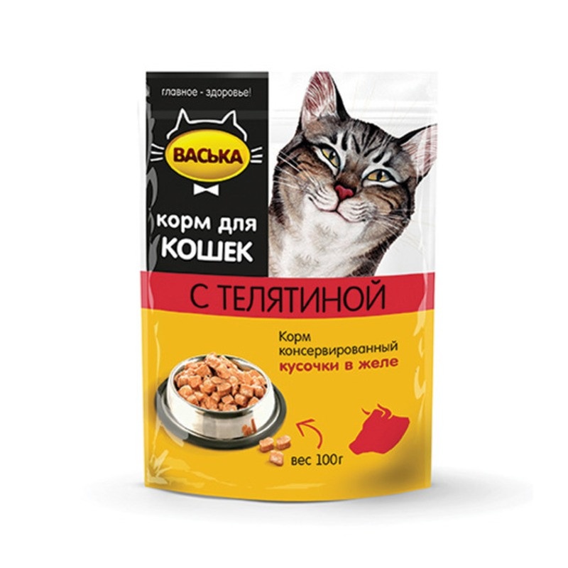 Влажный корм Васька кусочки в желе для кошек с нежной телятиной в паучах - 100 г