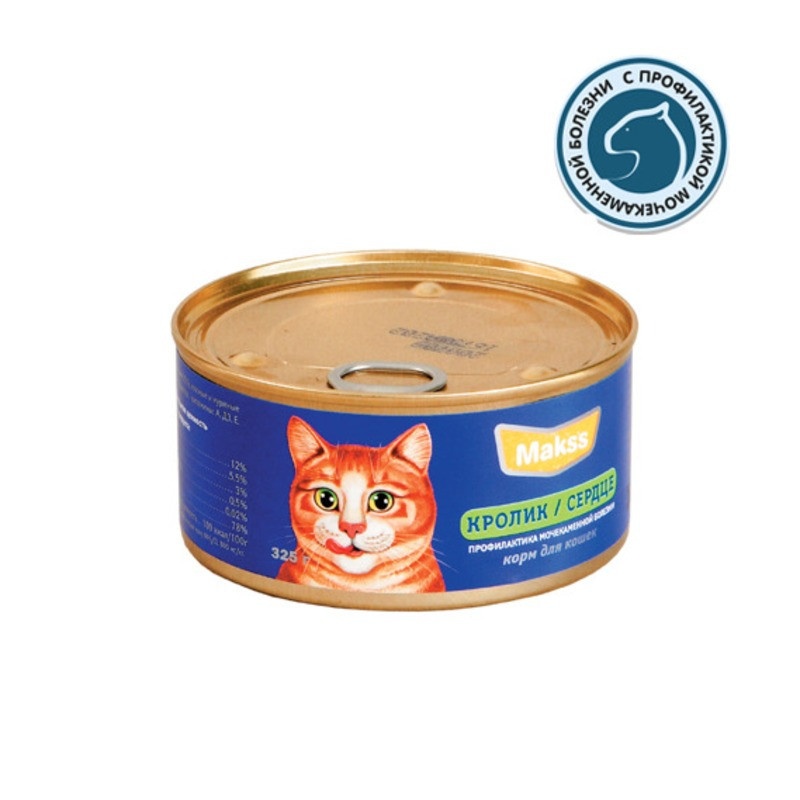 Влажный корм Maks's для кошек с кроликом и сердцем - 325 г