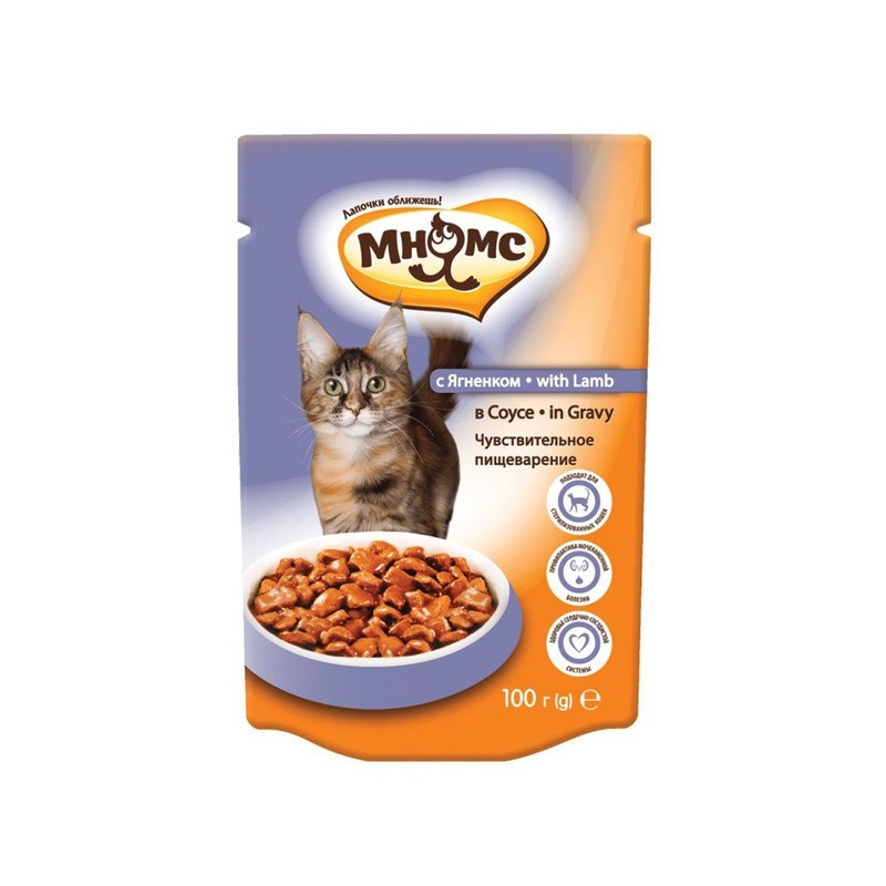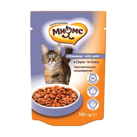 Мнямс паучи Чувствительное пищеварение с ягненком в соусе для взрослых кошек - 100 г