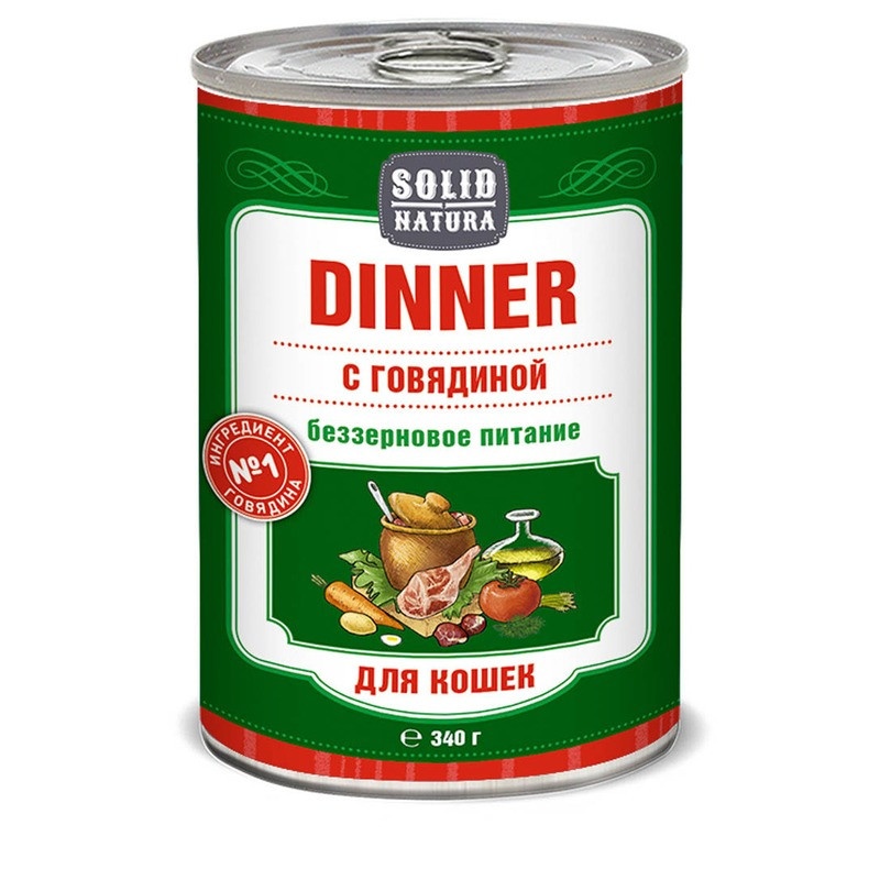 Solid Natura Dinner Говядина влажный корм для кошек в жестяной банке 340 г