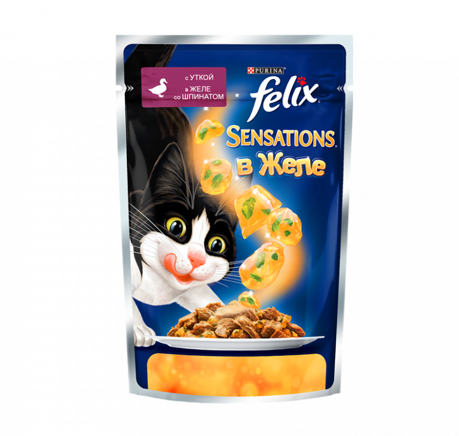 Паучи Felix Sensations для взрослых кошек с уткой и шпинатом в желе - 85 г