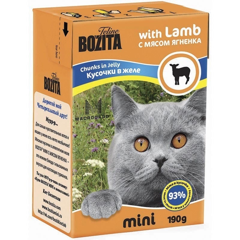 Bozita MINI консервы для кошек кусочки в желе с Мясом Ягненка 190 г