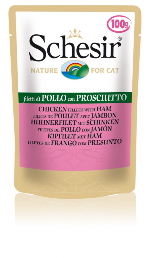 Schesir для кошек в паучах с куриным филе и ветчиной - 100 г