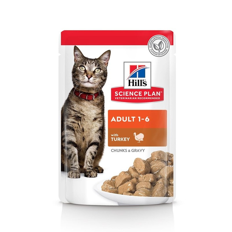 Ваша взрослая кошка нуждается в корме, который поддерживает здоровое пищеварение, блестящую шерсть, мышечную массу и здоровый иммунитет. Влажный корм для взрослых кошек с индейкой, в форме пауча Hill's Science Plan изготовлен из высококачественных, легко усваиваемых ингредиентов и специально создан для удовлетворения энергетических потребностей взрослых кошек. корм для кошек и котов из высококачественных ингредиентов Hill's Science Plan содержит Витамин Е и Омега-6 жирные кислоты, которые помогают обеспечить здоровую кожу и шерсть. Благодаря содержанию качественных белков этот корм для кошек также помогает поддерживать мышечную массу вашей кошки. Также, влажный корм для кошек содержит таурин - необходимую аминокислоту для поддержания здоровья сердца, функции почек и мочевого пузыря.