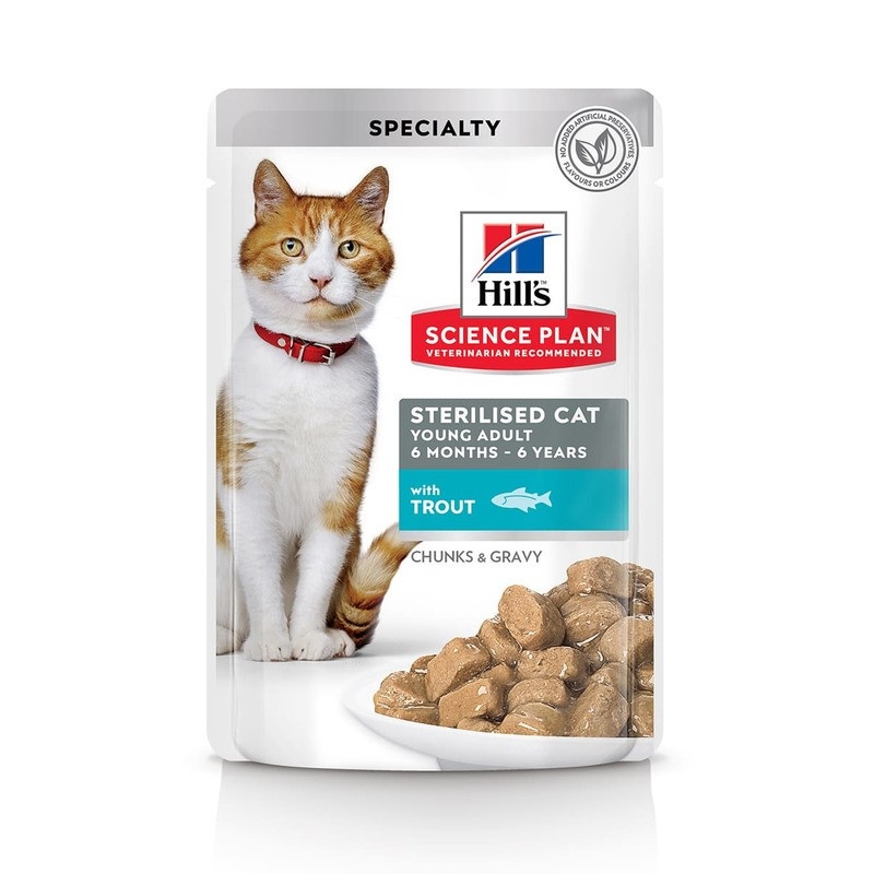 Влажный корм Hill's Science Plan для молодых стерилизованных кошек и кастрированных котов, пауч с форелью в соусе - 85 г